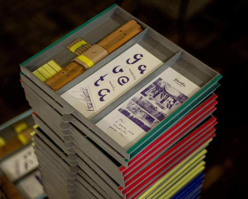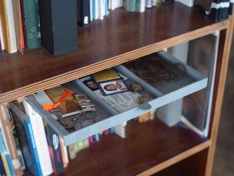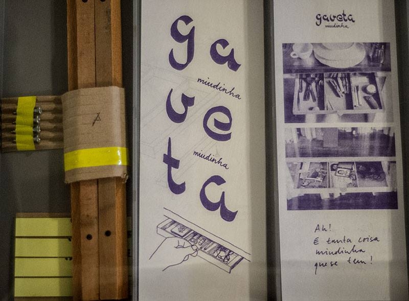 Gaveta Miudinha 2014, Gaveta de dentista, trilhos de madeira, parafusos, fita dupla face, Editora—Aplicação, Recife.