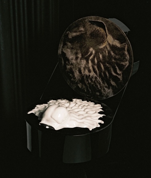Taucherin Mergulhadora 2005, Objeto de porcelana. 60x45x60cm, caixa de madeira pintada & revestida de veludo, espaço preto, iluminação pontual.